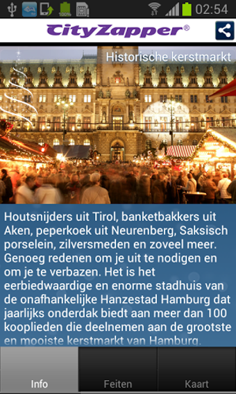 Met de Kerstmarkten in Duitsland-app heb je de locatie en openingstijden van meer dan 50 kerstmarkten bij de hand. Daarnaast vind je bij elke kerstmarkt extra informatie over bijvoorbeeld de lokale delicatessen, kersttradities of kerstwinkels in de buurt.