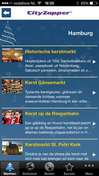 Het design laat misschien wat de wensen over, maar met de drie simpele knoppen onderaan het scherm navigeer je vloeiend door de Kerstmarkten in Duitsland-app.